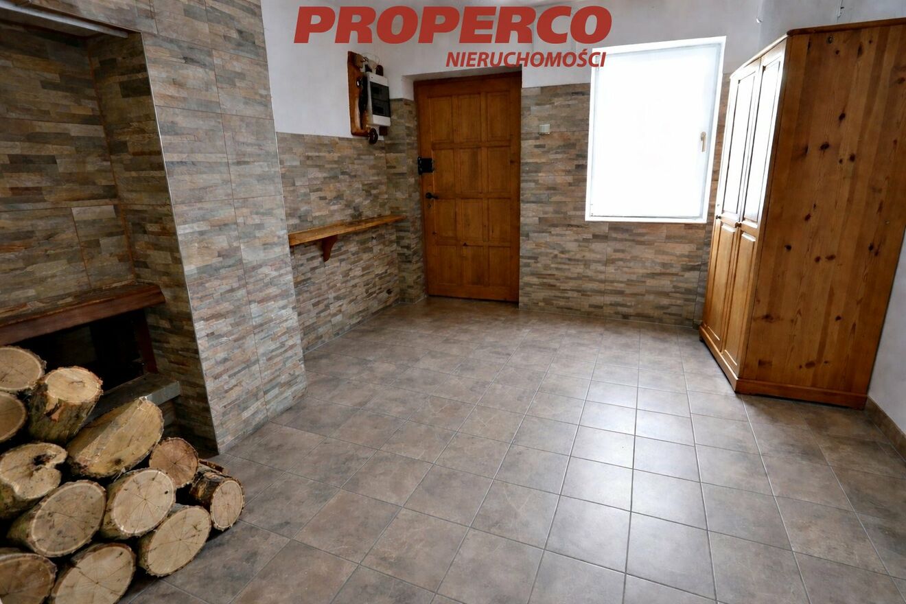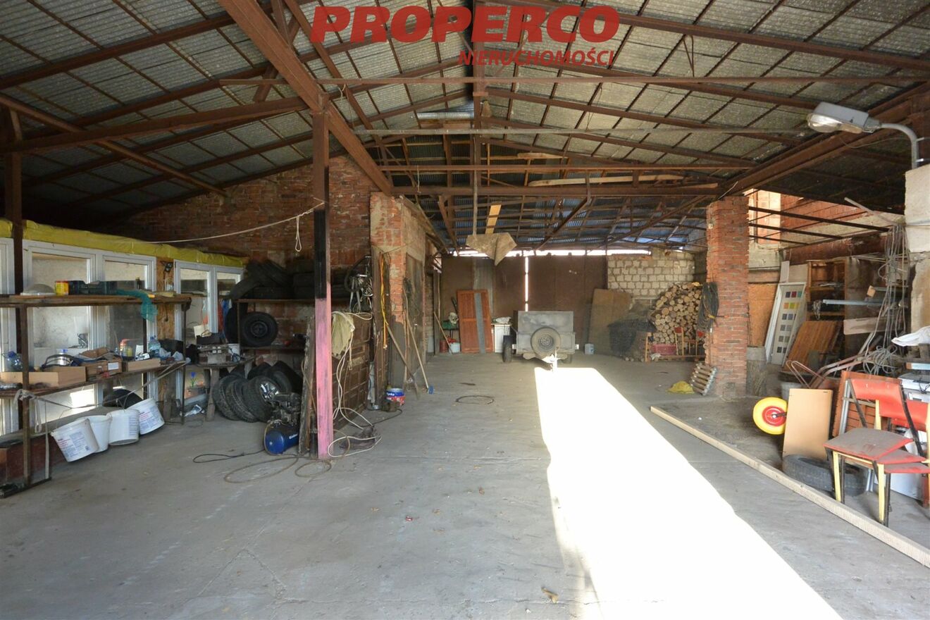 Poddasze stanowi otwarta przestrzeń do własnej aranżacji. Do budynku przylega stodoła/hala wybudowana częściowo z cegły, częściowo z pustaka, o powierzchni ok. 200 m2, wys. ok. 4,4 m, garaż o powierzchni ok. 38 m2 oraz dobudówka o powierzchni ok. 40 m2, w której znajduje się letnia kuchnia. Dom wybudowany z cegły w latach 70tych ubiegłego wieku. Ogrzewanie węglowe lub gazowe (w budynku znajduje się zarówno piec węglowy jak i gazowy). Stolarka okienna PCV, instalacje wymienione ok. 2015 r. Dom i stodoła kryte blachą.